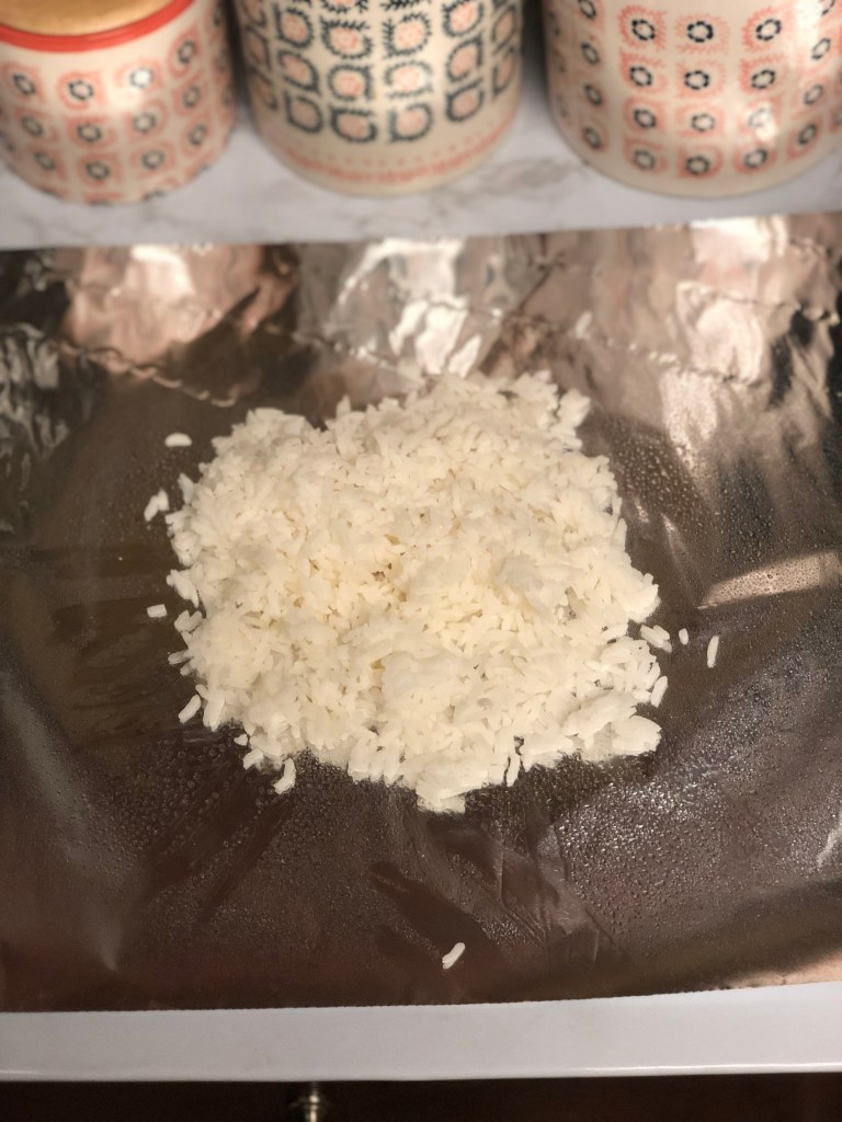 - If you don’t have pre-cooked/left over rice – make your rice according to the directions on the packet