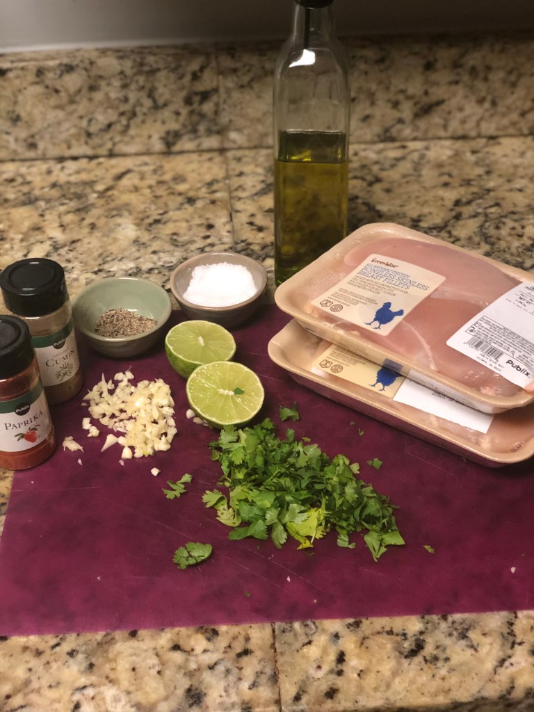 - Set chicken in the fridge to marinate for about 30 minutes or longer