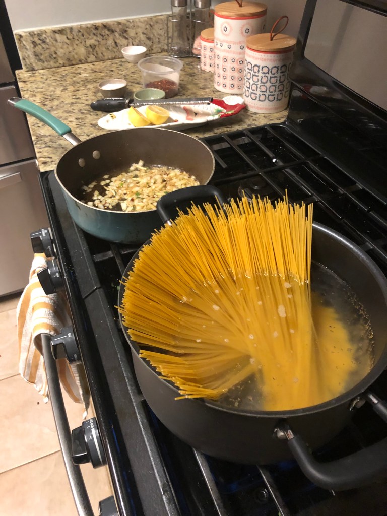 - 1 box of whole wheat angel hair pasta