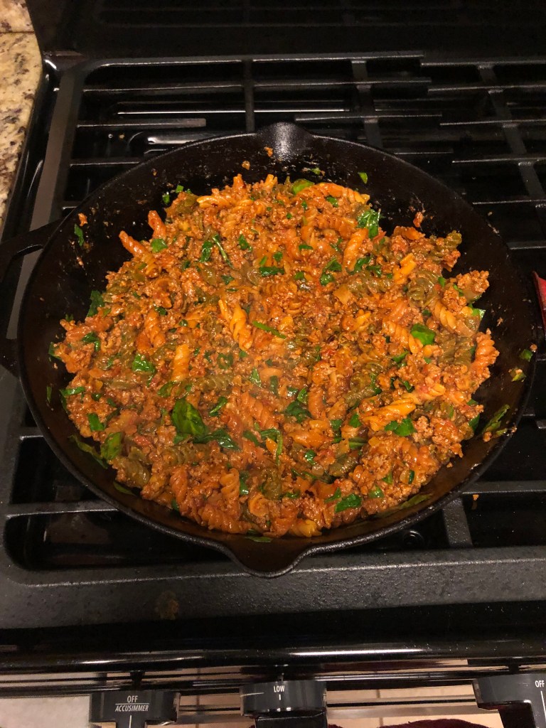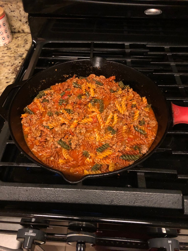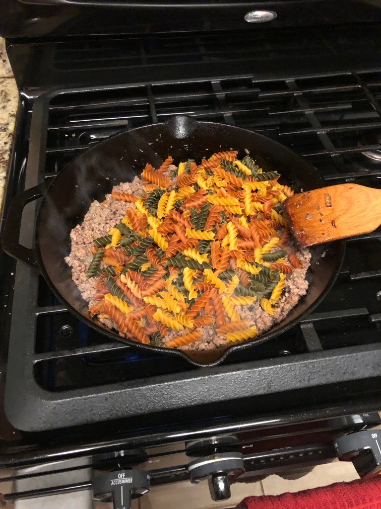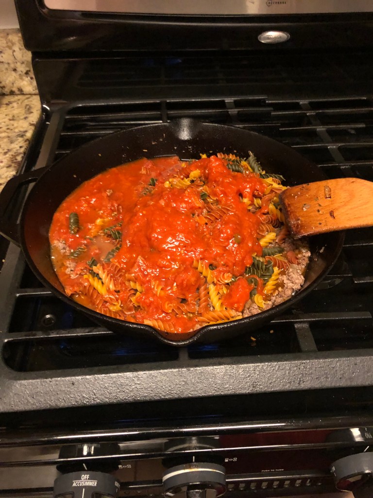 - Add in your pasta, marinara and water and mix up; simmer for 10-15 minutes or until the pasta is to your liking