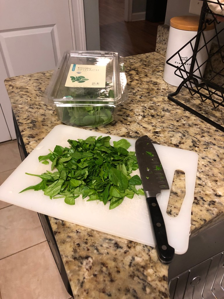 - Dice your onion into small pieces and chop your spinach