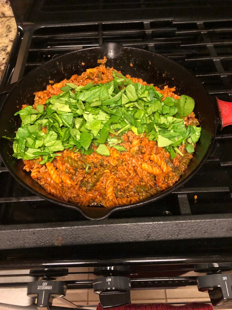 - Add your spinach and mix well for about another minute or so