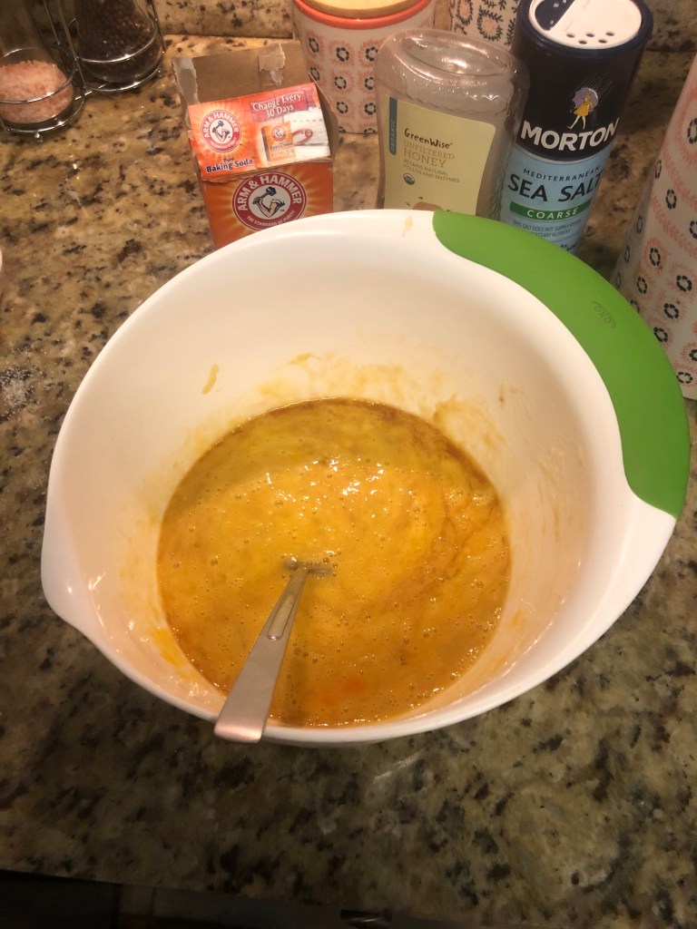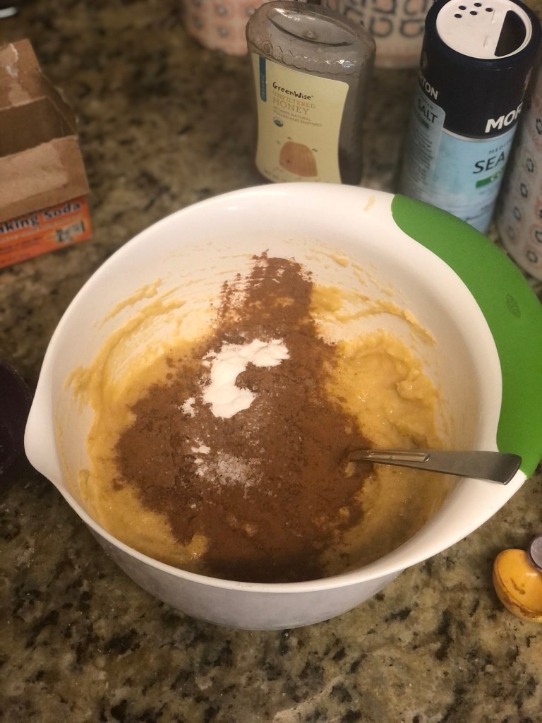 - Gradually whisk in almond flour, cinnamon, salt, and baking soda. Whisk until smooth