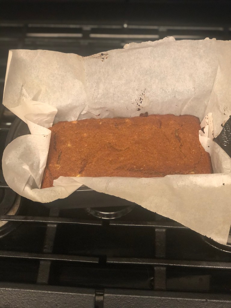 - Bake for about 45-50 minutes. You’ll know it’s done if you can poke it with a toothpick or butter knife and they come out clean