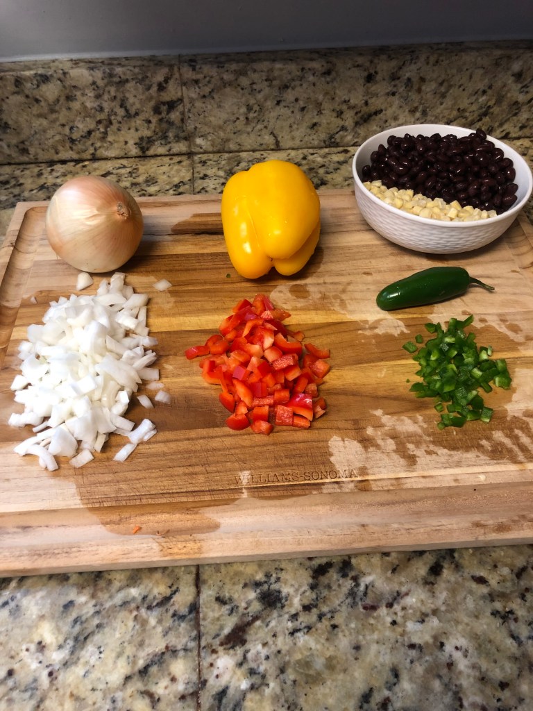 - Add bell pepper, onion and jalapeno to the skillet and saute until soft (about 10 minutes)